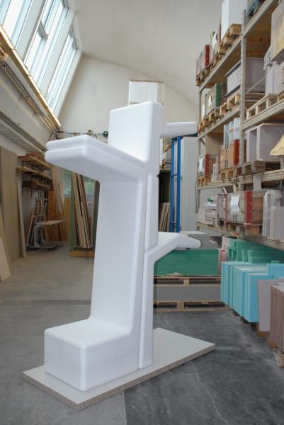 The social sculpture was designed for a project commissioned by Vitra and investigates the notion of a landscape within the professional environment. Relating to natural environments, its' tree-like shape allows various postures of sitting. The trunk performs as seat with a branch to lean against or rest your laptop on. The tree seat helps to turn an entrance hall into a public landscape to provide weary visitors or people waiting for friends with comfort. Upright, the waiting bench mimics a tree, but when it is pulled down, it becomes a high bench. Even tall adults can feel like a child when they swing their legs.