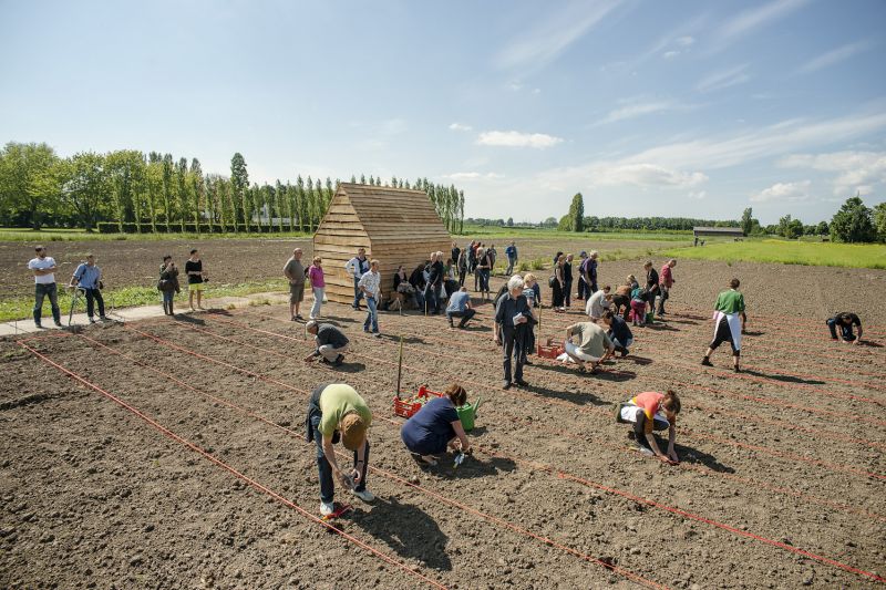 Buijtenbed can be placed at any location where there's something to do or see. It could possibly serve as a research station, or function in a program linked to the rhythm of the seasons and with activities surrounding the local harvesting calendar. In September it was placed next door to the farm of the Vos family where, on request, the daughter of the house would bring a tray of breakfast, walking all the way across the dike to Buijtenbed.